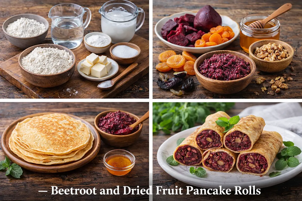 Beetroot Dried Fruit Pancake-Rolls