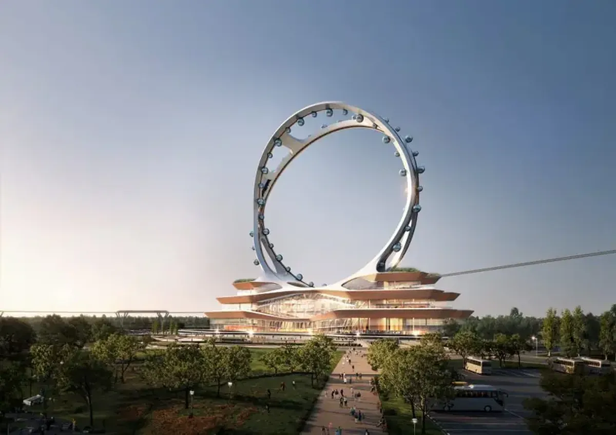 The innovative design of the record-breaking Seoul Twin Eye observation wheel, which features a spoke-less structure, w…